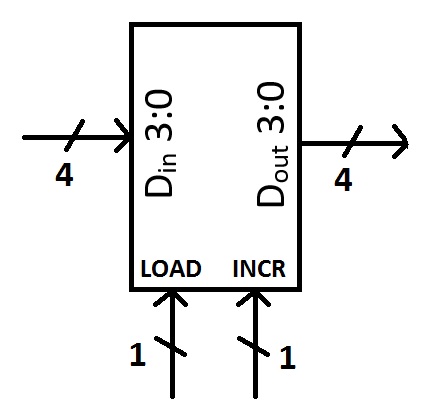 - If LOAD=0 and INCREMENT=1, it will increment the data it contained at the arrival of the clock edge. The DATAIN port is ignored.