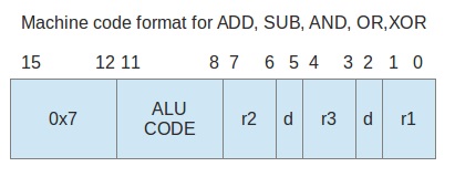 Machine Code Format for ADD, SUB, AND, OR, XOR