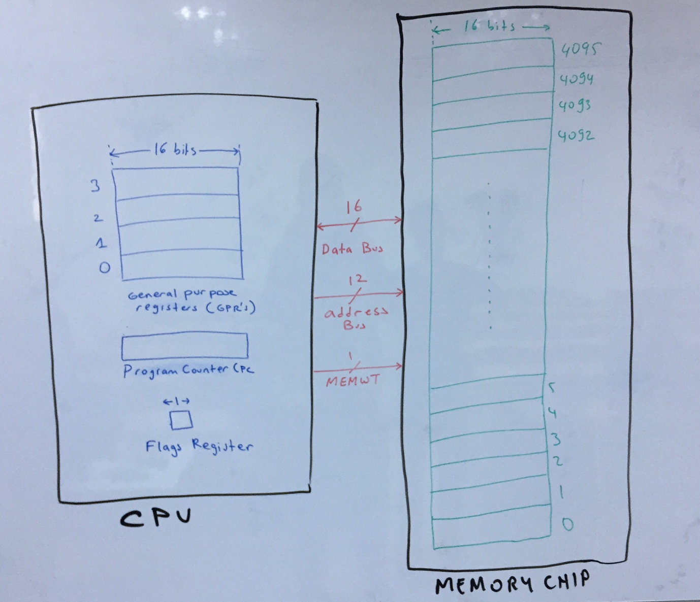 Our hardware consists of two chips: A CPU and a memory chip. The CPU consists of