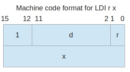 Note that LDI instructions are 32 bit long, and they occupy two consecutive words in memory..