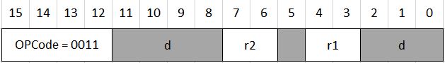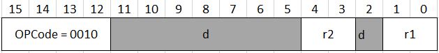 Each instruction corresponds to a 16-bit number (except LDI, which corresponds to a 32-bit number). The first four bits of every instruction is known as the “opcode field”. The opcode field indicate the type of instruction.