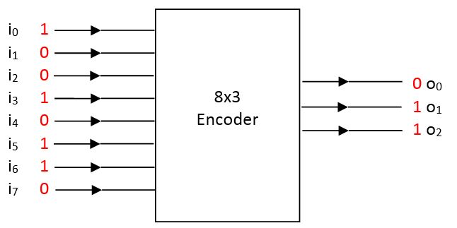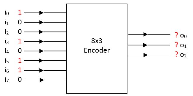 The problem of more than single 1’s as input is resolved by adding a priority mechanism to the encoder: If there is more than single 1 entering to the encoder, the encoder will only consider the input with highest index. For example, in the above figure, the priority encoder will only consider i6 as 1 and all the rest of the input lines will be assumed to be 0.