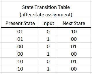 and the state transition table becomes
