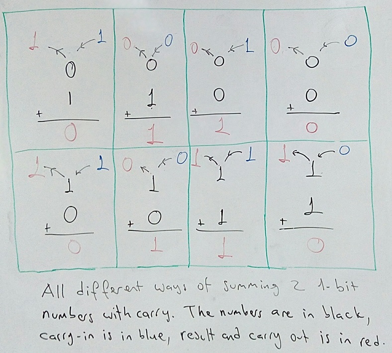 - Three 1-bit numbers are added: ith bit of first number, ith bit of the second number, and carry-in